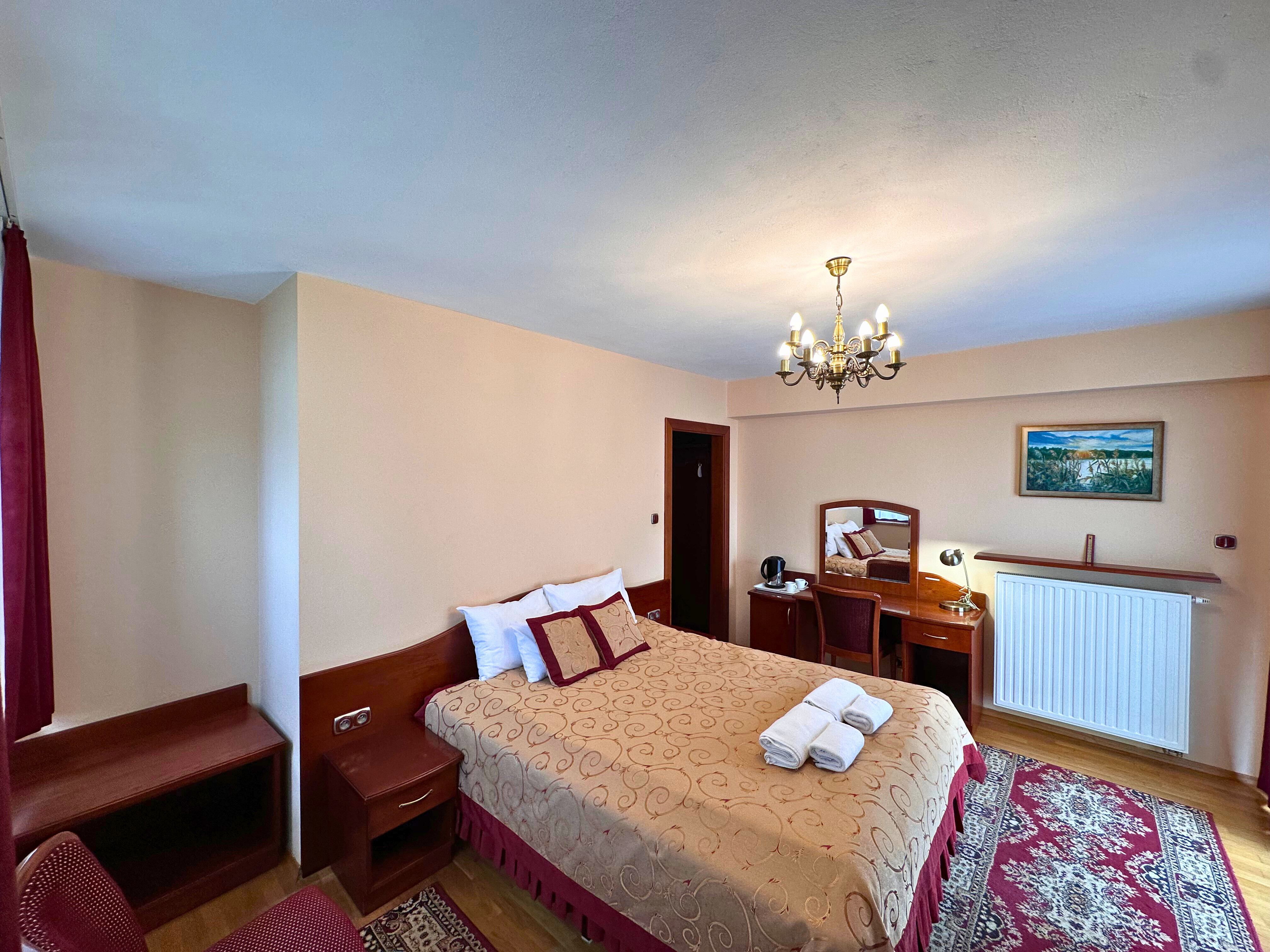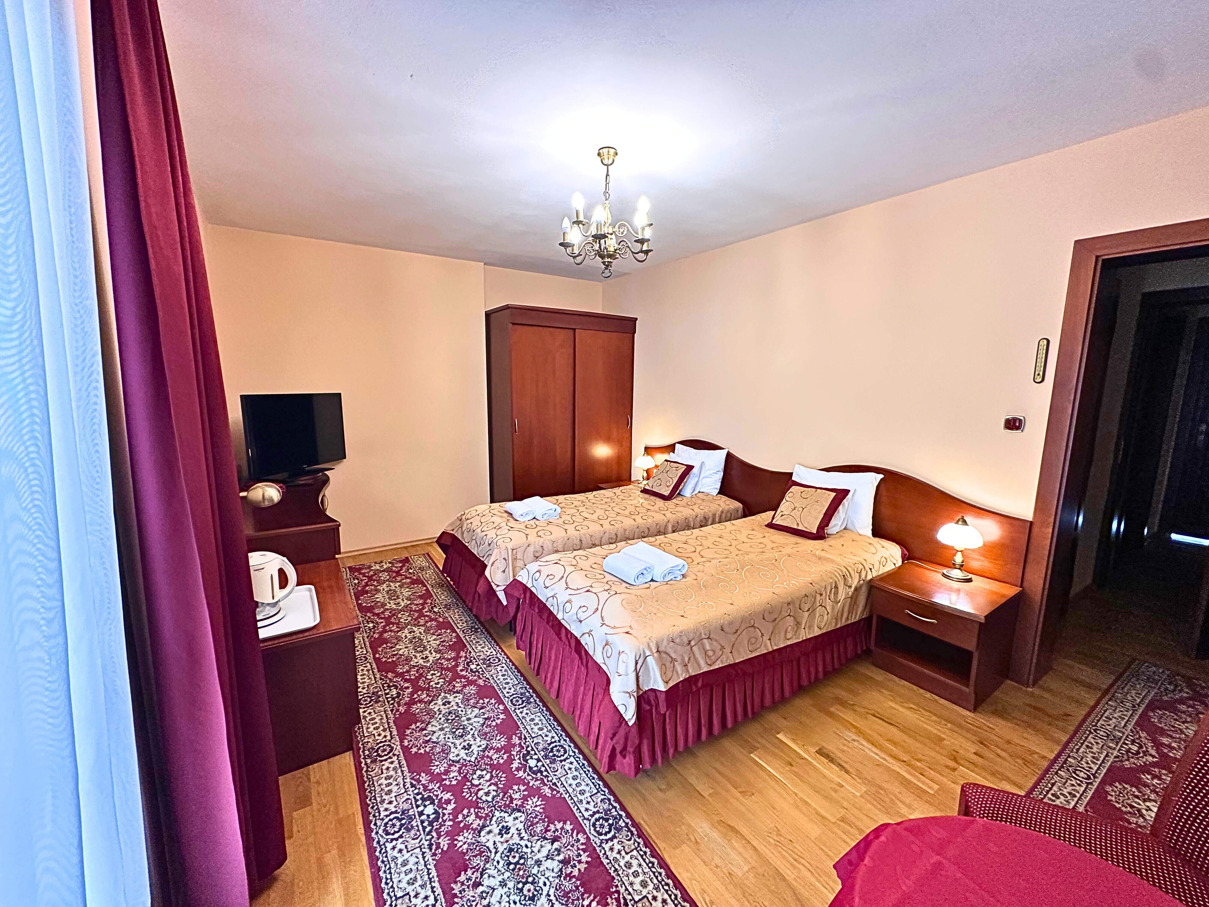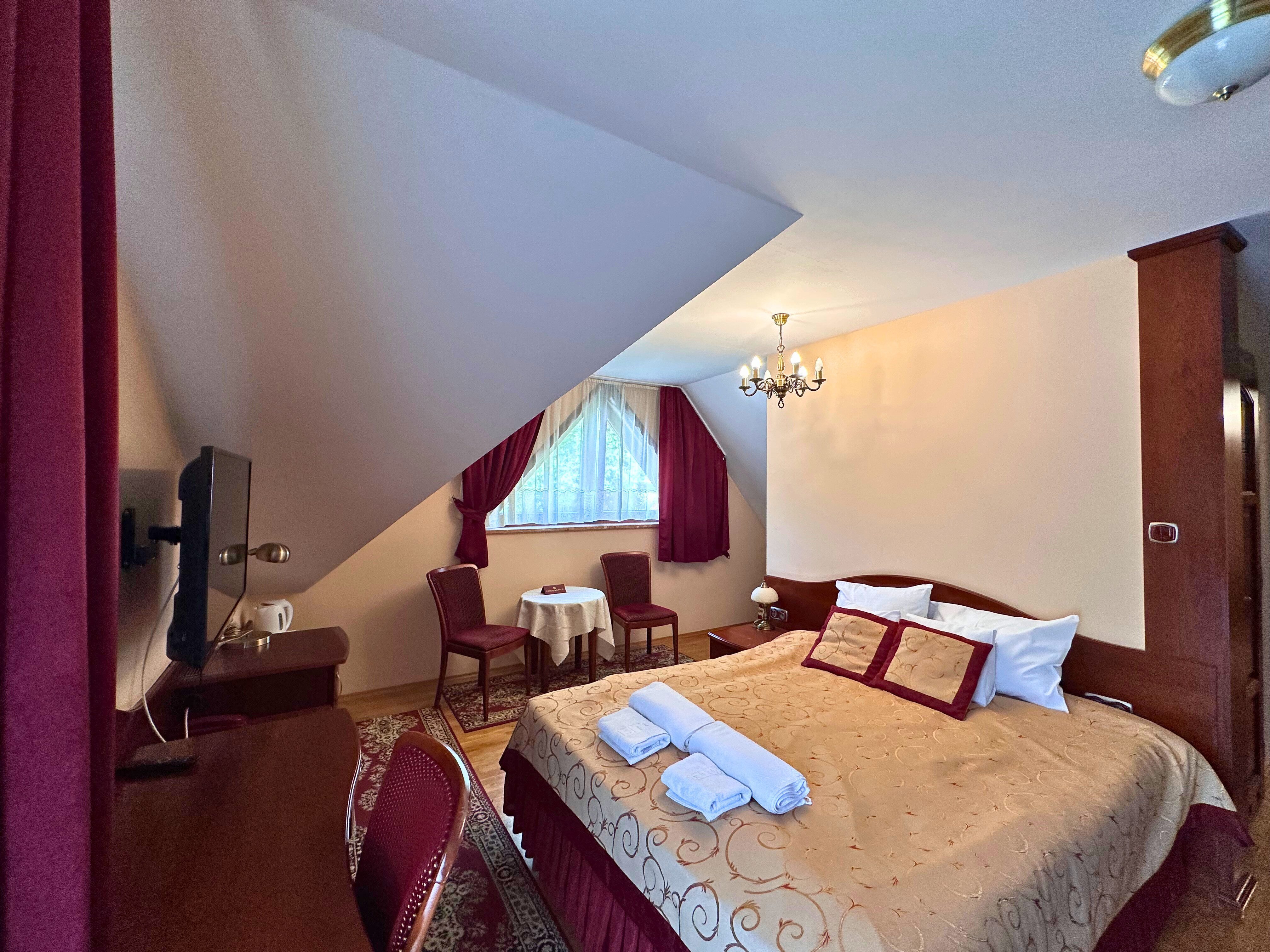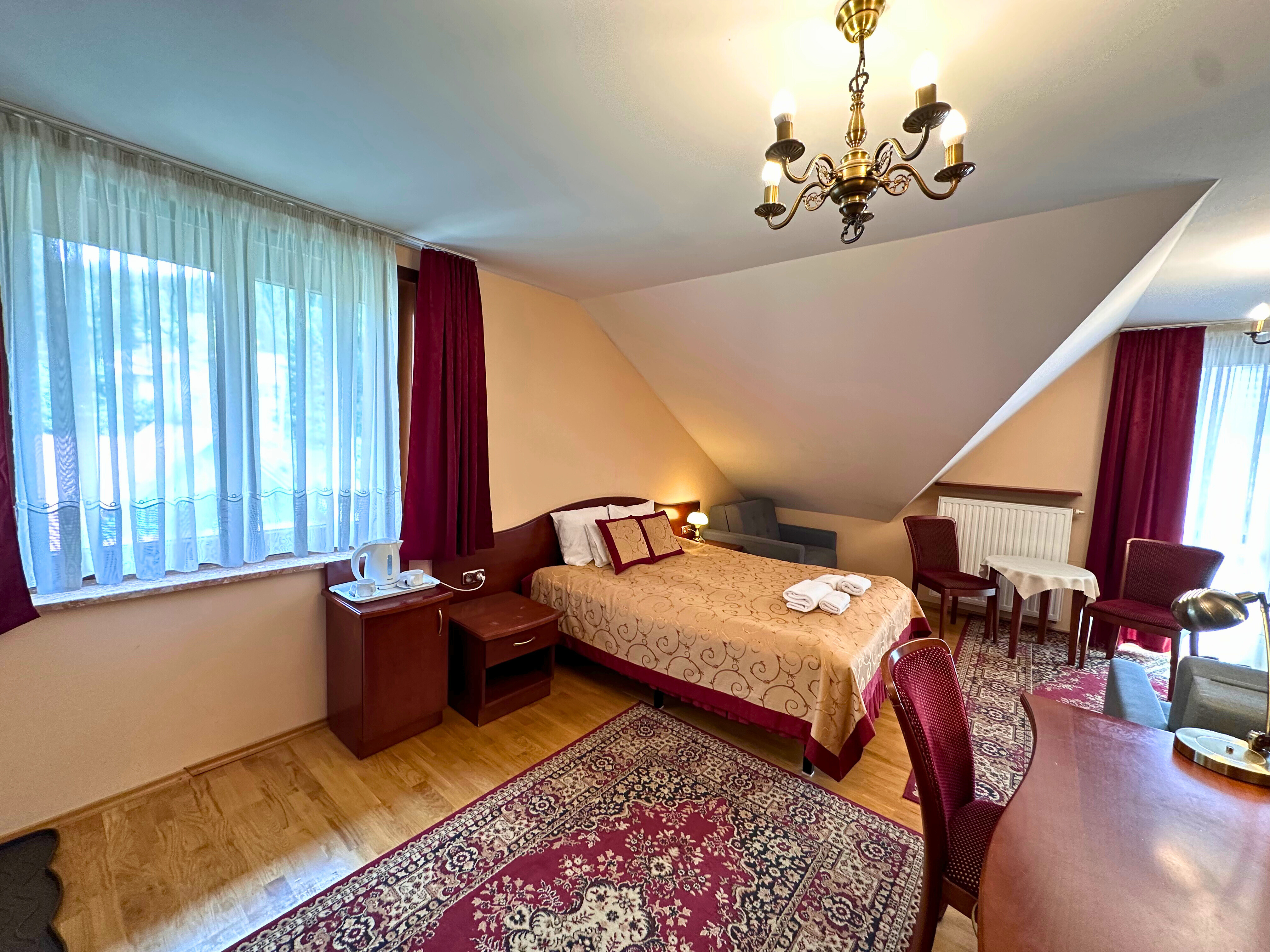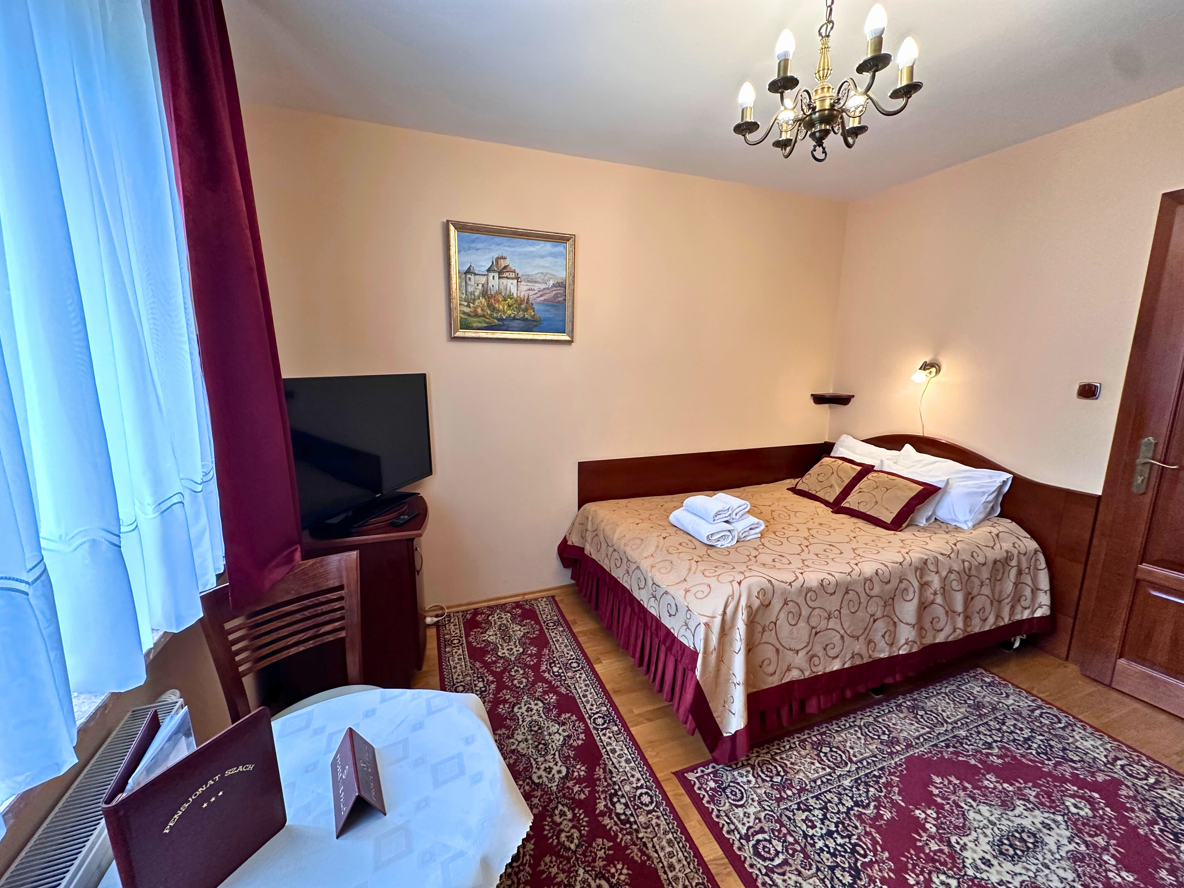 Pensjonat Szach to trzygwiazdkowy obiekt w sercu Krynicy-Zdroju, który łączy wygodę z odrobiną luksusu. Do dyspozycji gości przygotowano 10 przytulnych pokoi dwuosobowych z możliwością dostawek. Każdy poranek zaczyna się tutaj od smacznego śniadania, a chwile relaksu zapewnia strefa wellness z jacuzzi i sauną. To doskonałe miejsce zarówno na romantyczny wypad, jak i spokojny wypoczynek w górach.